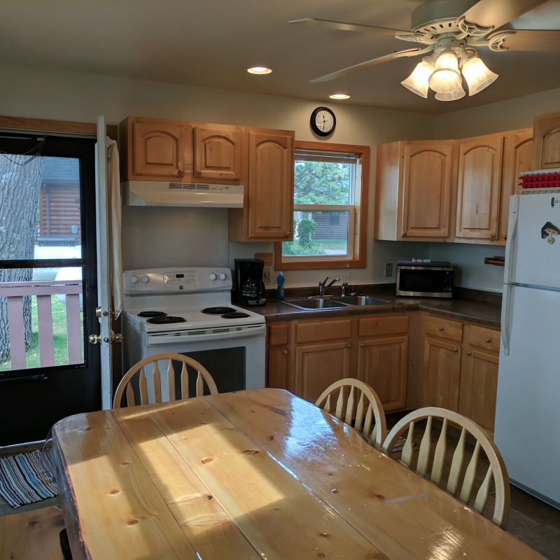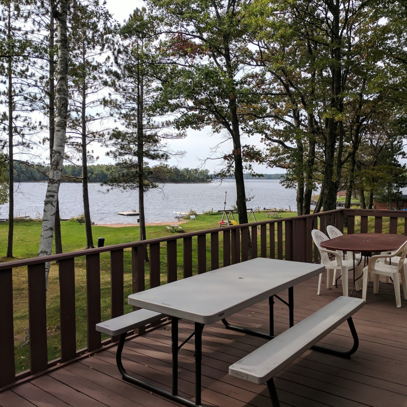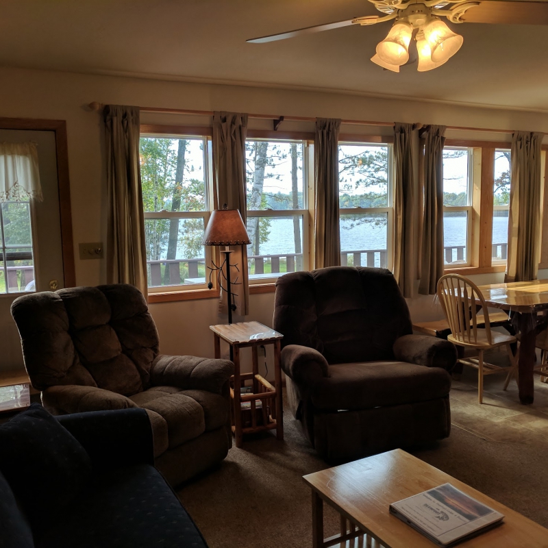 Cabin 9 has a wall of windows overlooking the water so you can enjoy the lake morning, noon and night!